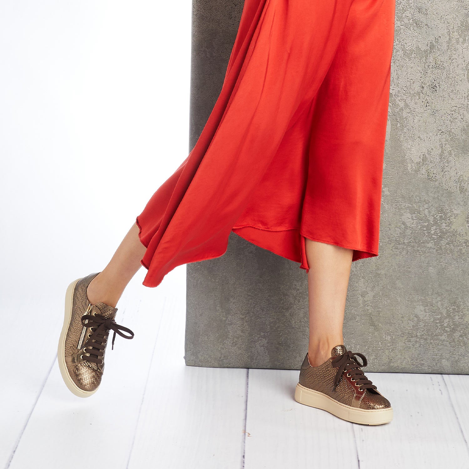 Feel fabulous in 'Feather', our lightweight trainers for women - now here for the new season in luxe pewter weave! The rich brown laces provide perfect earthy contrast against the metallic finish, while the neutral-coloured sole ensures effortless versatility. The super lightweight construction delivers weightless comfort that feels as luxurious as it looks. Ideal for bringing some glamour to the everyday this season!