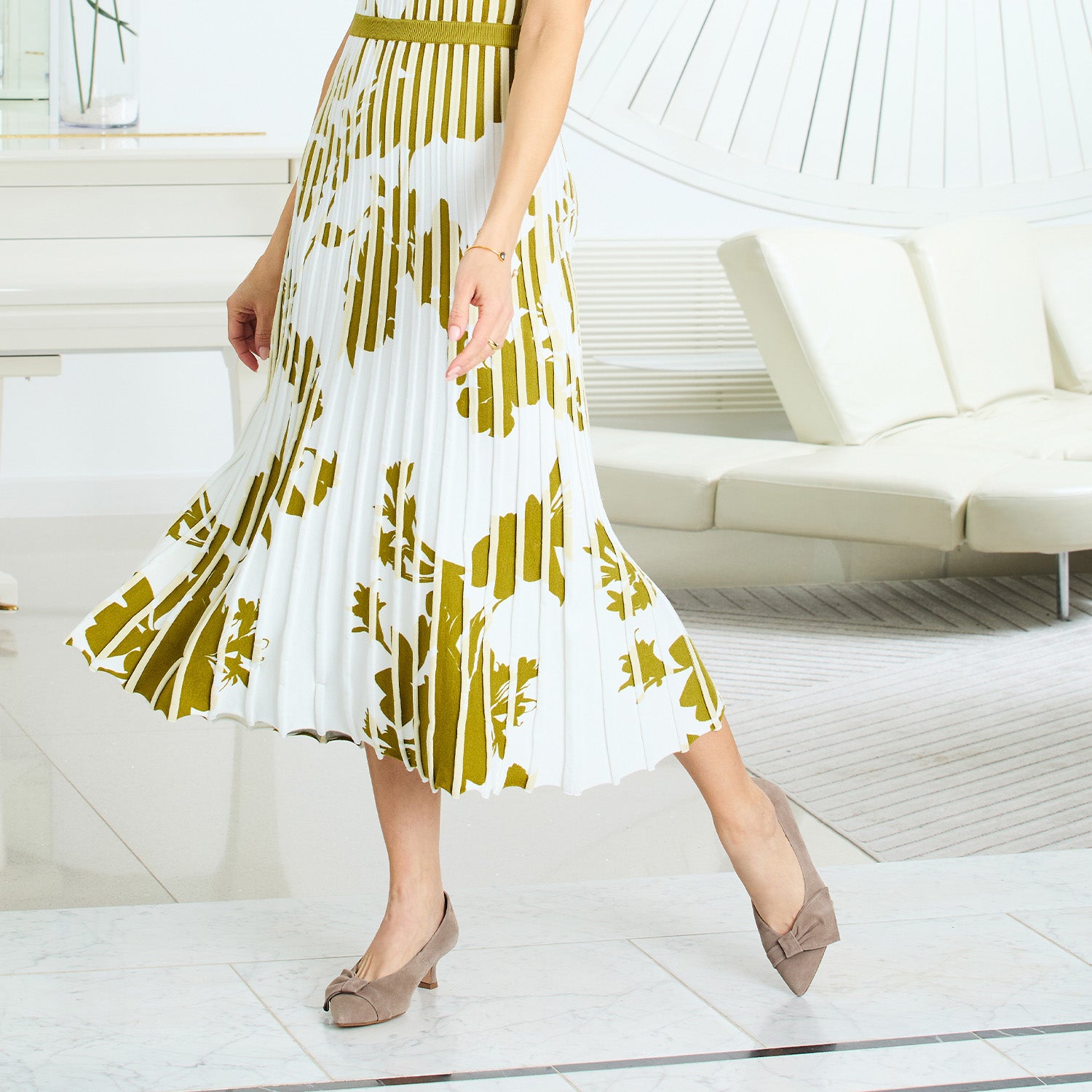 • Matching taupe suede bow detailing