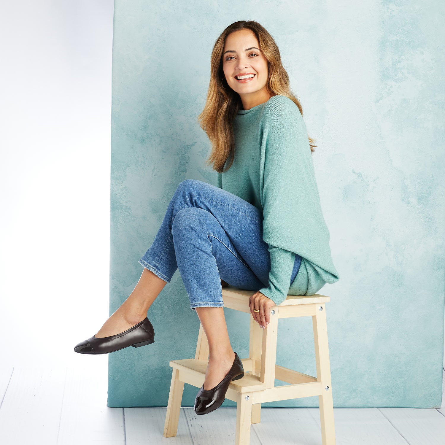 Look alive - 'Luna' is here in luxe chocolate leather! With a matching patent leather toe cap, these ballet flats are the perfect no-fuss neutral to carry you into the new season. Underfoot cushioning, a wide toe box and our signature Bunion Bed stretch panel make these supremely comfortable women's flats for bunions.