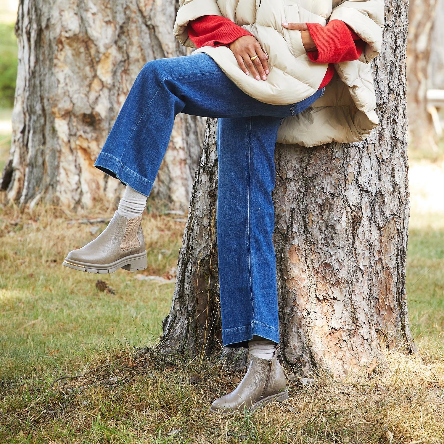 Walk your walk in 'Runway', our stylish ankle boots for bunions! Handmade in Italy from luxe taupe leather with a matching sole, these are the ultimate neutral boots for the new season. Subtle metallic detailing and elasticated side panels elevate this classic style while the wide toe box, contoured underfoot cushioning and stretch panel for bunions provide ultimate comfort.