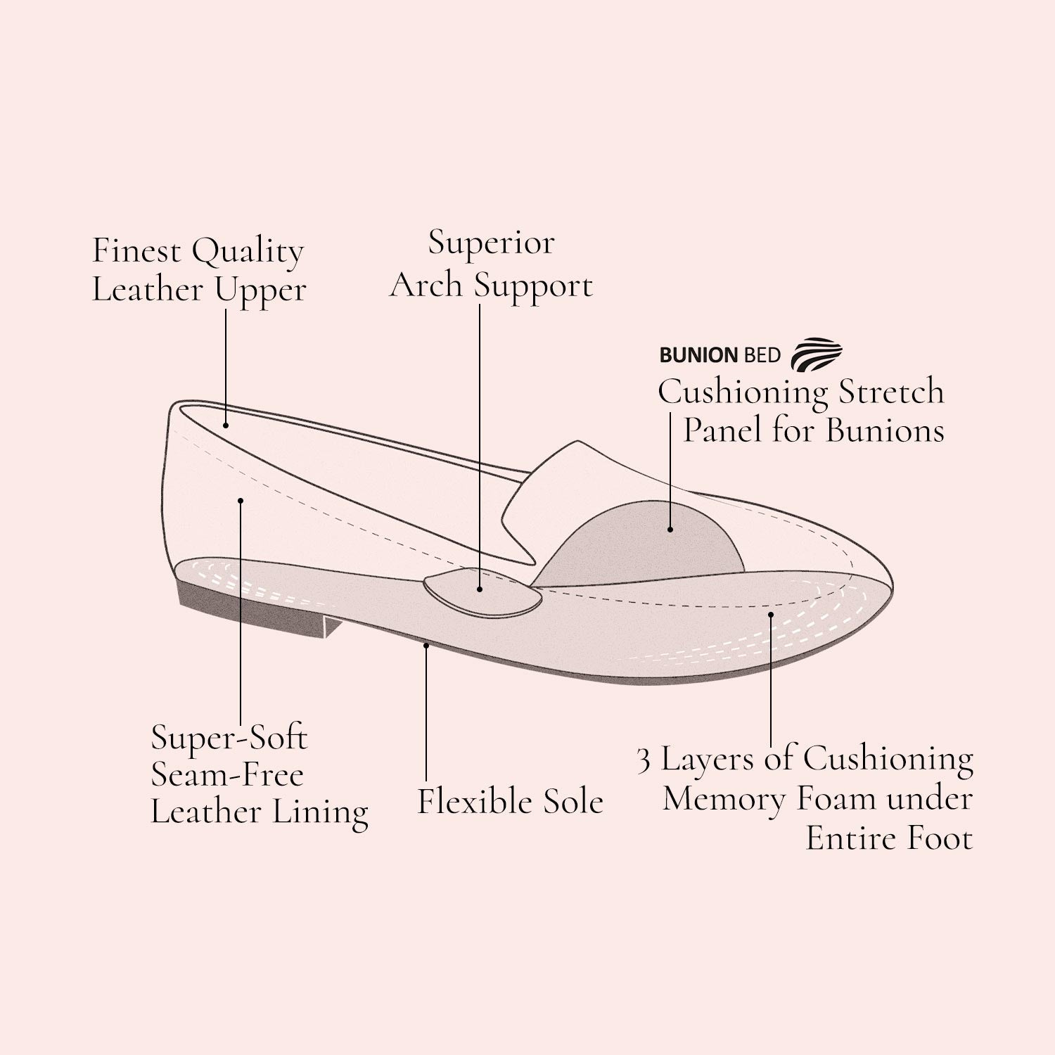 A wider toe box eases foot crowding and disguises the appearance of bunions.